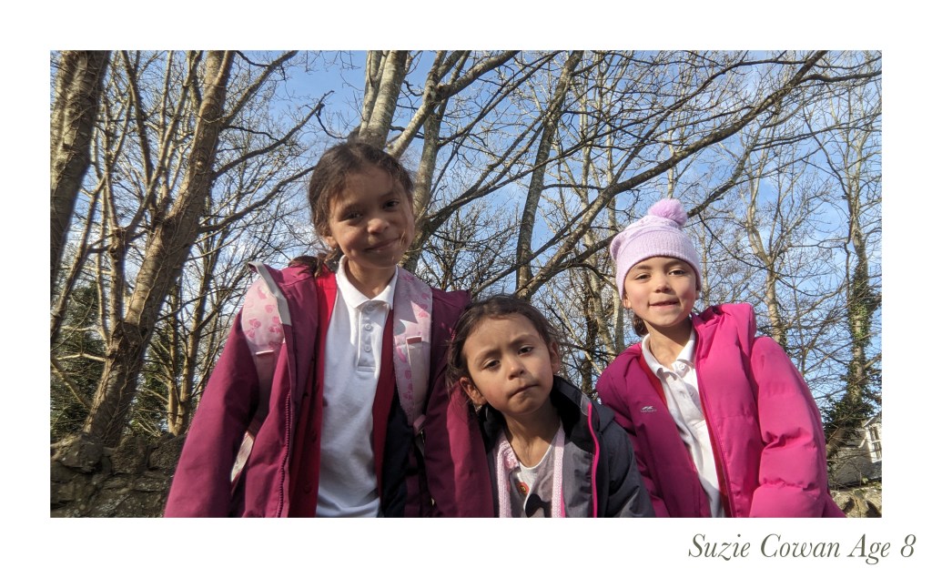 But although that part of Hame ends, a second part now takes over; reaching out through workshops and social media, I’ve invited the young people of WK to submit their own images that sum up their thoughts. This work is called “Oor Hame”, and after I spend the next week coordinating and printing the images, they will be exhibited in the shops of West Kilbride’s Main Street, turning the village into an open air gallery. Suzie (8) who featured with her family in my exhibition, has submitted her own take: